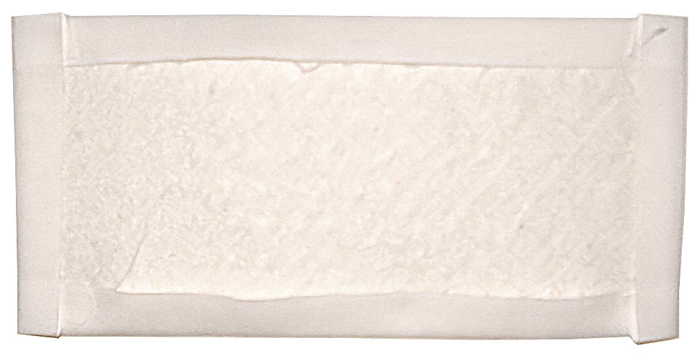 - Place the 8″ x 4″ batting strip against the fabric, aligning its edges with the four crease lines. Re-fold the fabric’s edges and press well again.