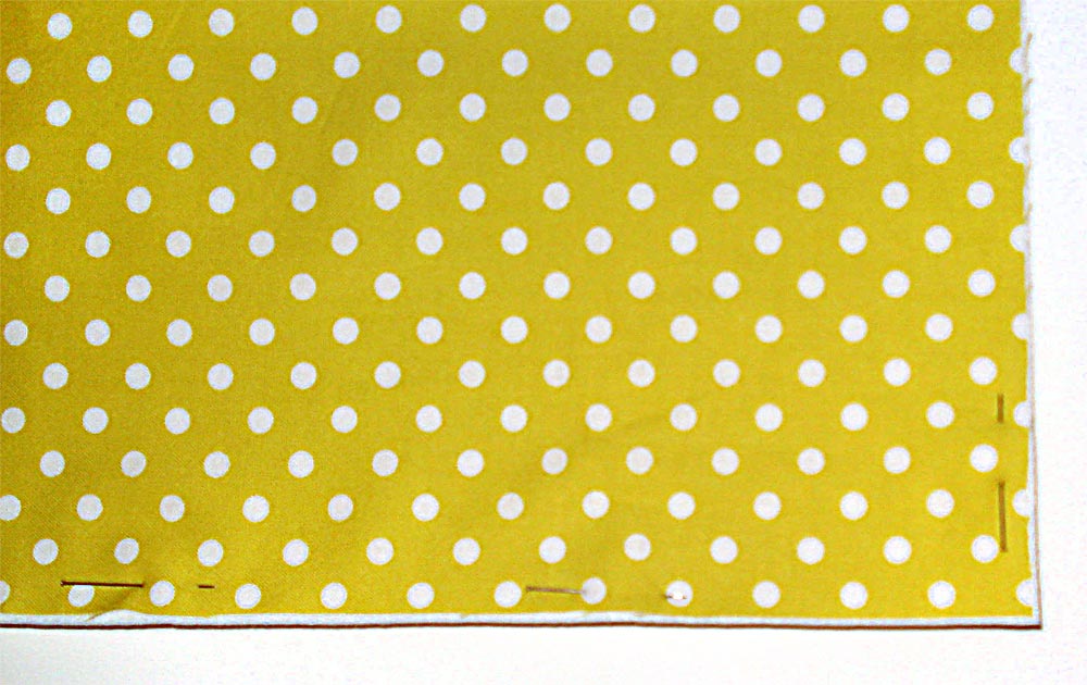 - Fold down and press the top raw edge of the lining ½” all around, creating a nice finished edge. Pin in place with the pins on the right side of the fabric.