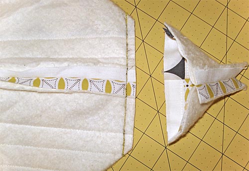 - Place a piece of lightweight batting against the wrong side of each exterior panel you just created.