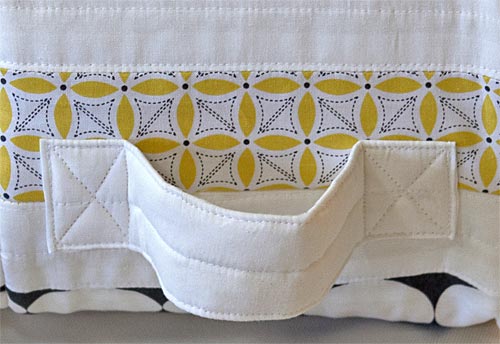 - Add a final line of topstitch down the center of the handle. In other words, your handle now has the same topstitching pattern of three lines as the solid strips on the panels.