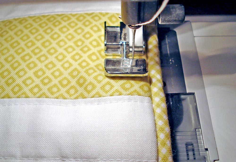 - Edgestitch around all four sides in matching thread (white in our sample).