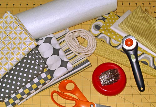 - Fabric for the LINING: ½ yard of 44-45″ wide fabric; we used Citron Dumb Dot from the Citron-Gray Color Story by Michael Miller Fabrics