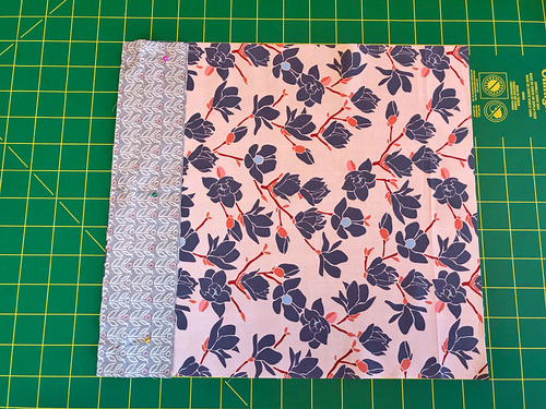 NOTE: ⅓ yard is exactly 12″ and you need this full amount to make your cuts; if you are worried about errors in cutting or not having enough for a special fussy cut, get ½ yard. In addition, as noted below in the Getting Started section, our fabric had a random motif, so although the stated width and height are correct for panel construction, we actually cut them vertically from our ⅓ yard of fabric. If you have a strong horizontal motif, you may again need a full ½ yard cut. - ¼ yard of 44″+ wide quilting weight cotton for the exterior accent panels of the bag as well as the handle and tab