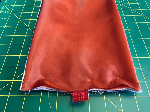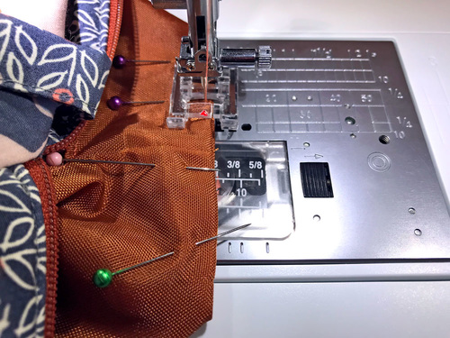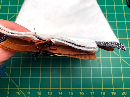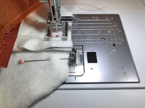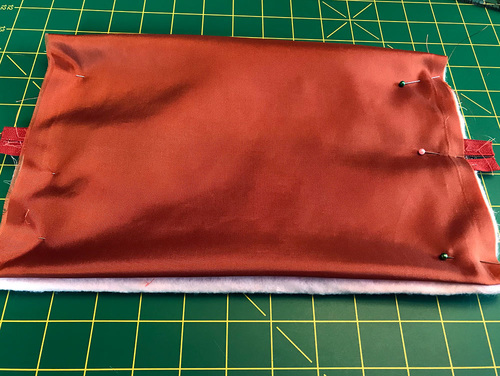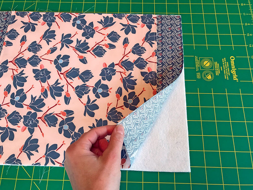 - Fold the lining back down into position, and take the assembled layers to your machine.