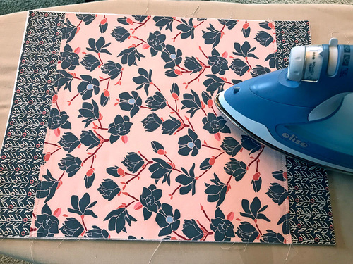 - Place your fusible batting against the wrong side of the completed exterior panel. The raw edges of the two layers should be flush all around.