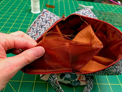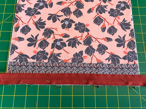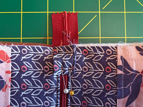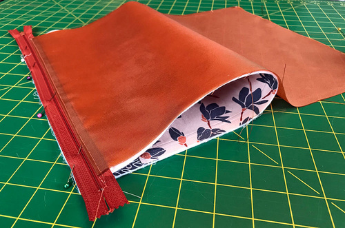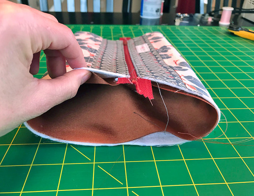 - The only tricky parts are sewing across the top and bottom of the zipper. You will need to gently pull back one layer to reveal the full seam allowance and slowly stitch across.