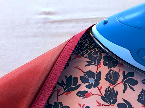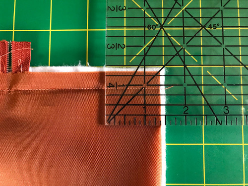 - When complete, bring the two layers (exterior and lining) wrong sides together. The remaining free edge of the zipper should be sticking up. Press lightly. Remember, don’t apply the heat from an iron directly to the ripstop.
