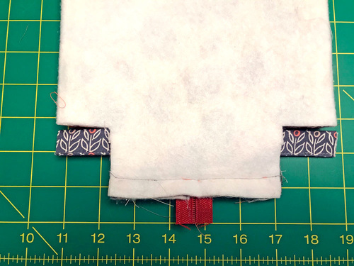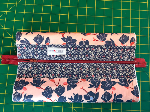 - We stitched on a Sew4Home label at this point, centering it within one of the accent panels towards one end.