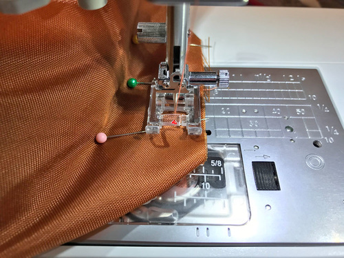 NOTE: We used a standard Satin Stitch foot. You could also switch to a Quarter Inch Seam foot.