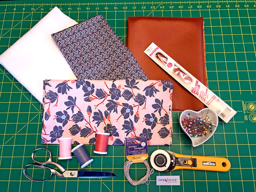 We used two pretty quilting cottons for the exterior with wipe-clean ripstop nylon for the interior. Staying with cotton on the outside gives you a huge selection of possibilities for mixing and matching. It’s a great way to personalize the look for yourself – or as a gift. You need just small cuts of all the fabrics, so you may already have the perfect combo in your scrap stash. If you buy new, the yardage amounts shown below would actually provide enough to make two matching bags.