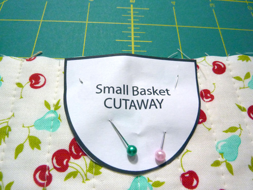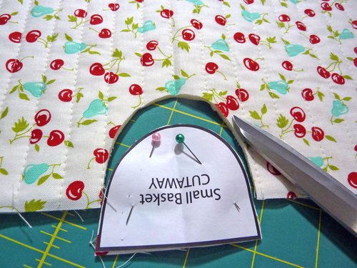 All the raw edges are bound, and the top binding extends into ties that hold the liner’s accent cuff tight against the basket. We’ve even provided a template to help cut out the curved openings that allow the basket’s handle to move freely.
