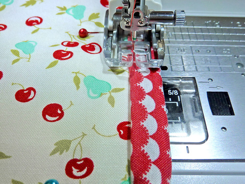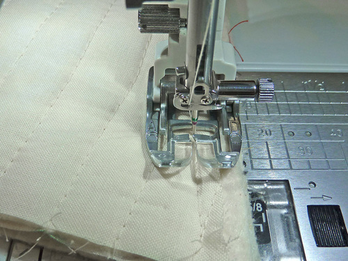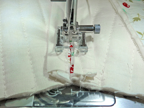 - Edgestitch the binding in place. Go slowly and carefully to insure you are catching both the front and back of the binding in this one seam.