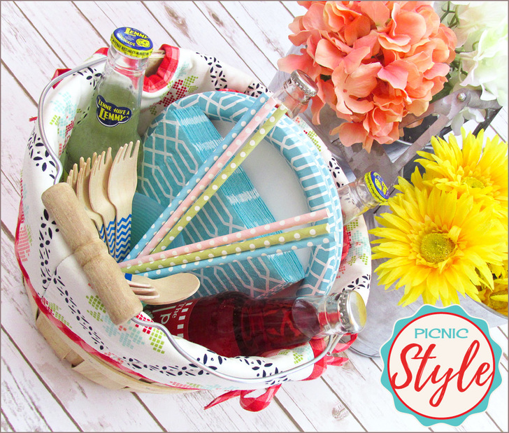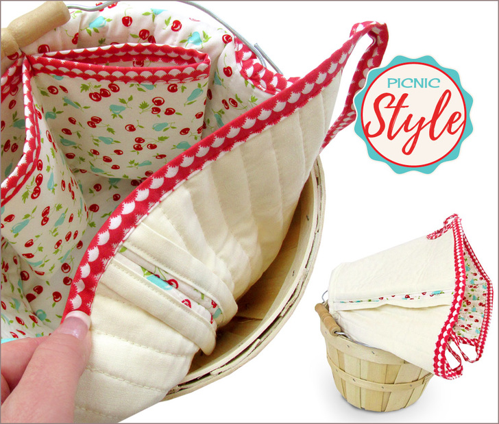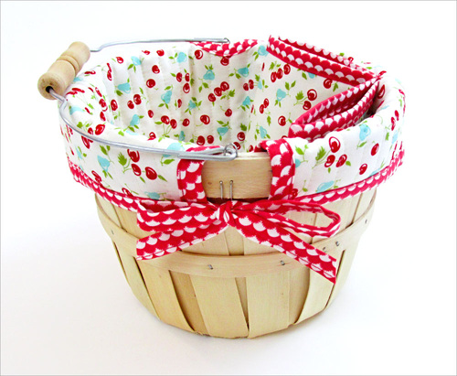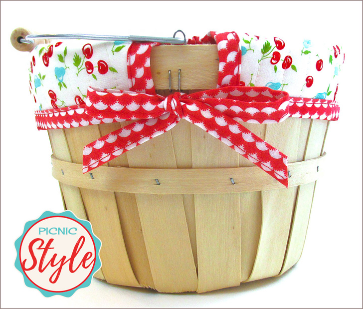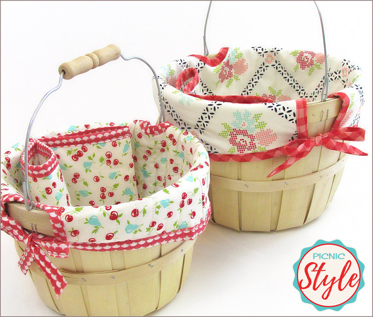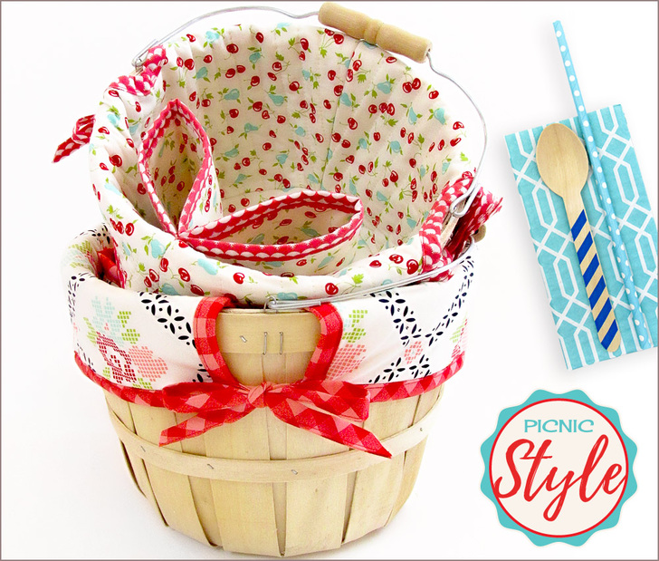 These basket liners would also be an excellent foundation for a gift basket. Stay with the picnic theme and load them up with kitchen gadgets for a summer wedding shower. Or, how cute would they be in nursery-themed fabric for a new baby gift?!