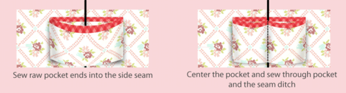 - Flatten the pocket so it is centered on the sewn side seam. The illustration below helps you visualize this flattening. The center front of the pocket should be aligned with the seam so the pocket is even side to side.