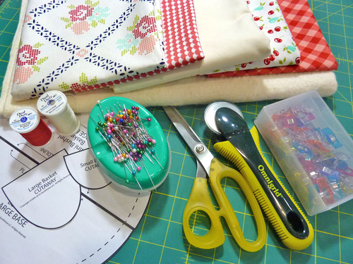 - ½ yard of 44”+ wide quilting weight cotton in a coordinating print for the accent binding around the top and across the pocket