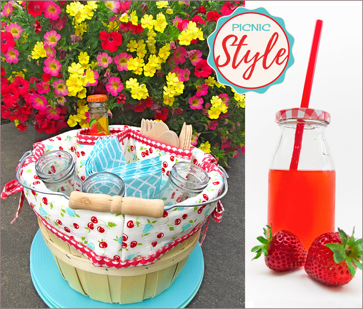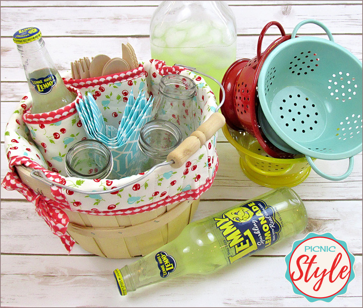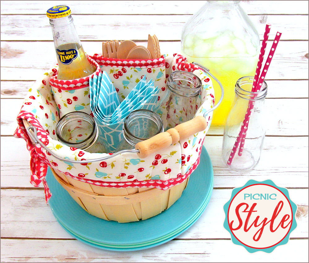 We love putting together clever containers that help make dining outside in the warmer weather a bit easier… and prettier. These super cute basket liners are from our You Asked 4 It list. This is an official little list we keep of all the suggestions and requests you send in through your comments and emails. If you’re dreaming of cold lemonade on a hot day, these little liners could be just the project to help make your dreams come true. They would also be fun as a centerpiece on a garden party table.