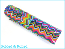 Our mats finish at 15″ x 20″ and the wrap strap is sized to allow you to either roll the two mats together into a long, narrow tube; or, fold them once and roll into a shorter bundle. We used cotton laminate but oilcloth would be another good option.