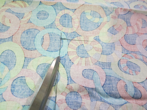 - From the front fabric (the circles in our sample), cut TWO 15″ high x 20″ wide rectangles.
