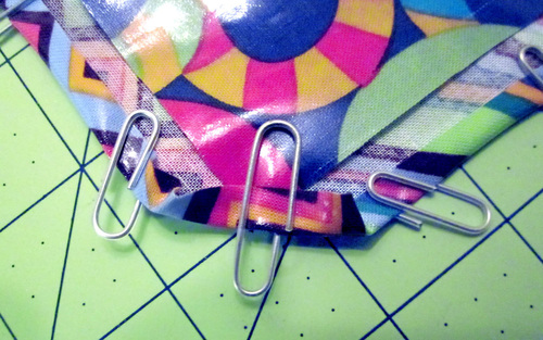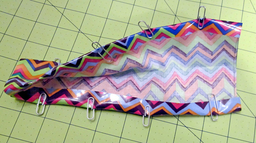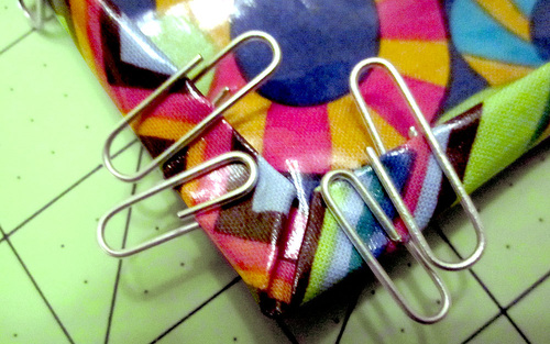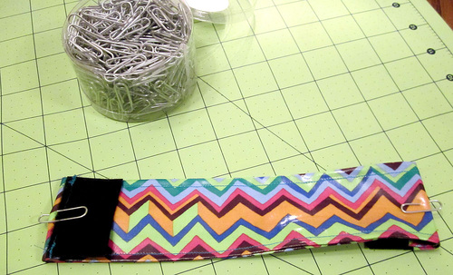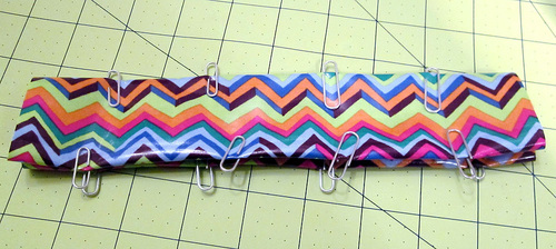 - Fold in each 9″ edge ½” and clip in place.
