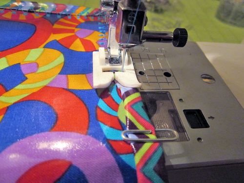 NOTE: For more on this corner technique, see our tutorial on Narrow Hems with Clean Corners. - If possible, attach a Teflon® type foot. We used our Janome Ultra Glide foot.