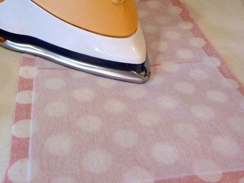 - Following manufacturer’s instructions, fuse the interfacing to one side of one of the fabric panels.