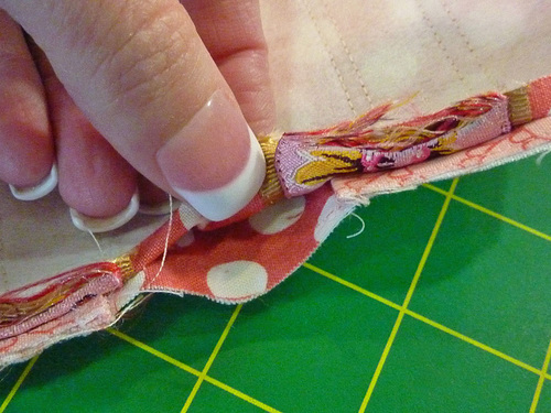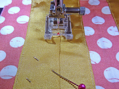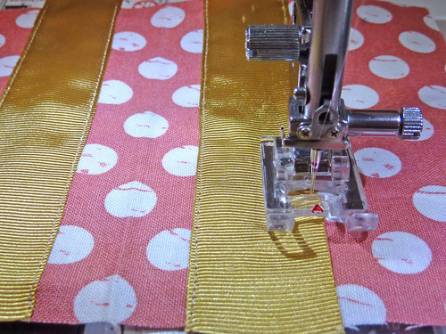 - Stitch each feature ribbon in place along both sides.