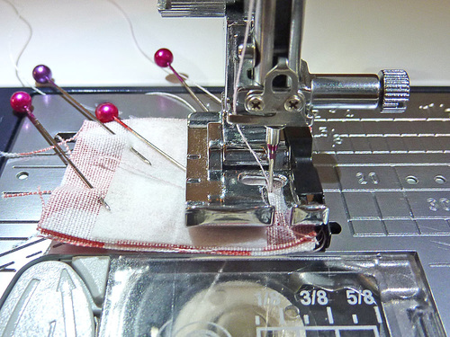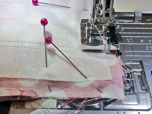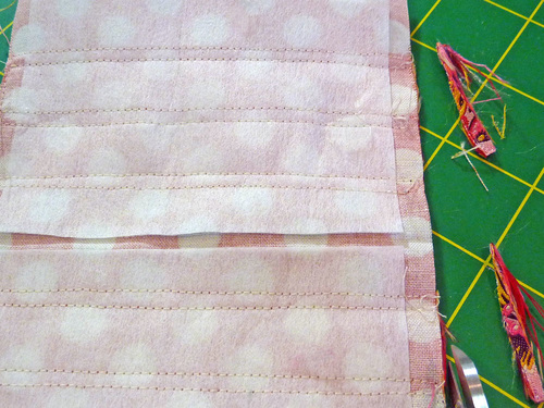 - Stitch one vertical seam at the aligned points through all the layers.