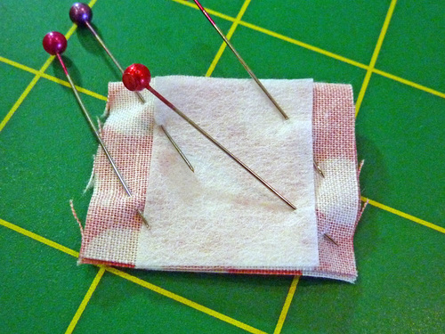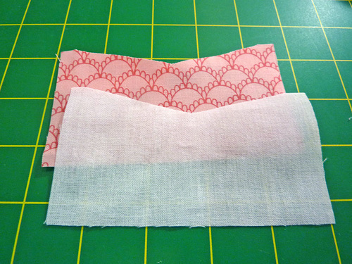 - Find the two panels for the single pocket and the one piece of lightweight interfacing.