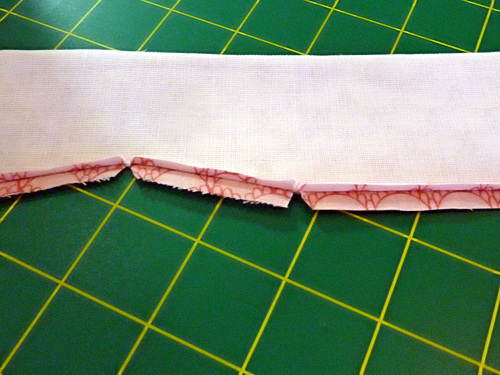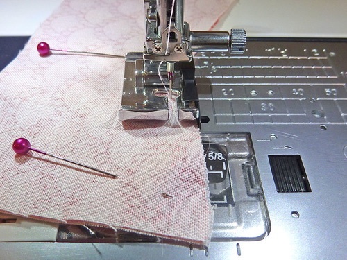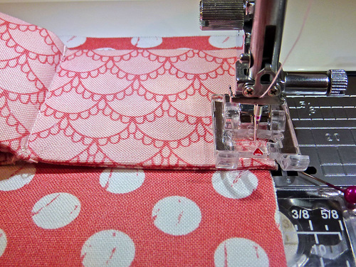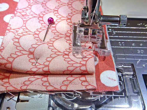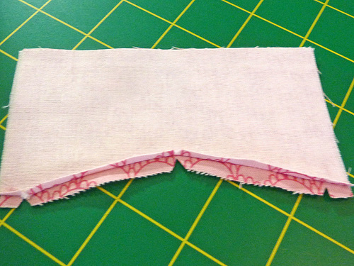 - Using a ¼” seam allowance, stitch across the top “V” edge only.