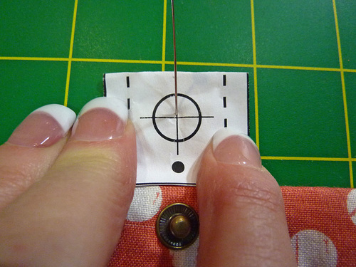 - Set the cap half of the snap from front to back.