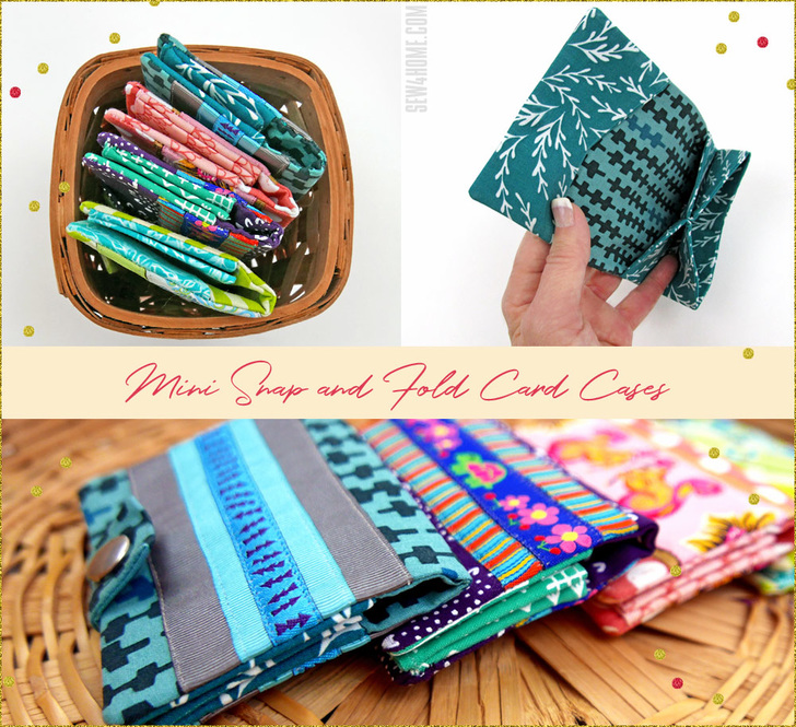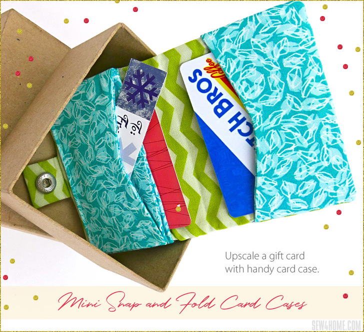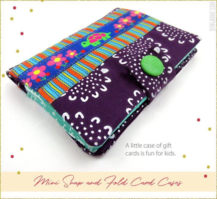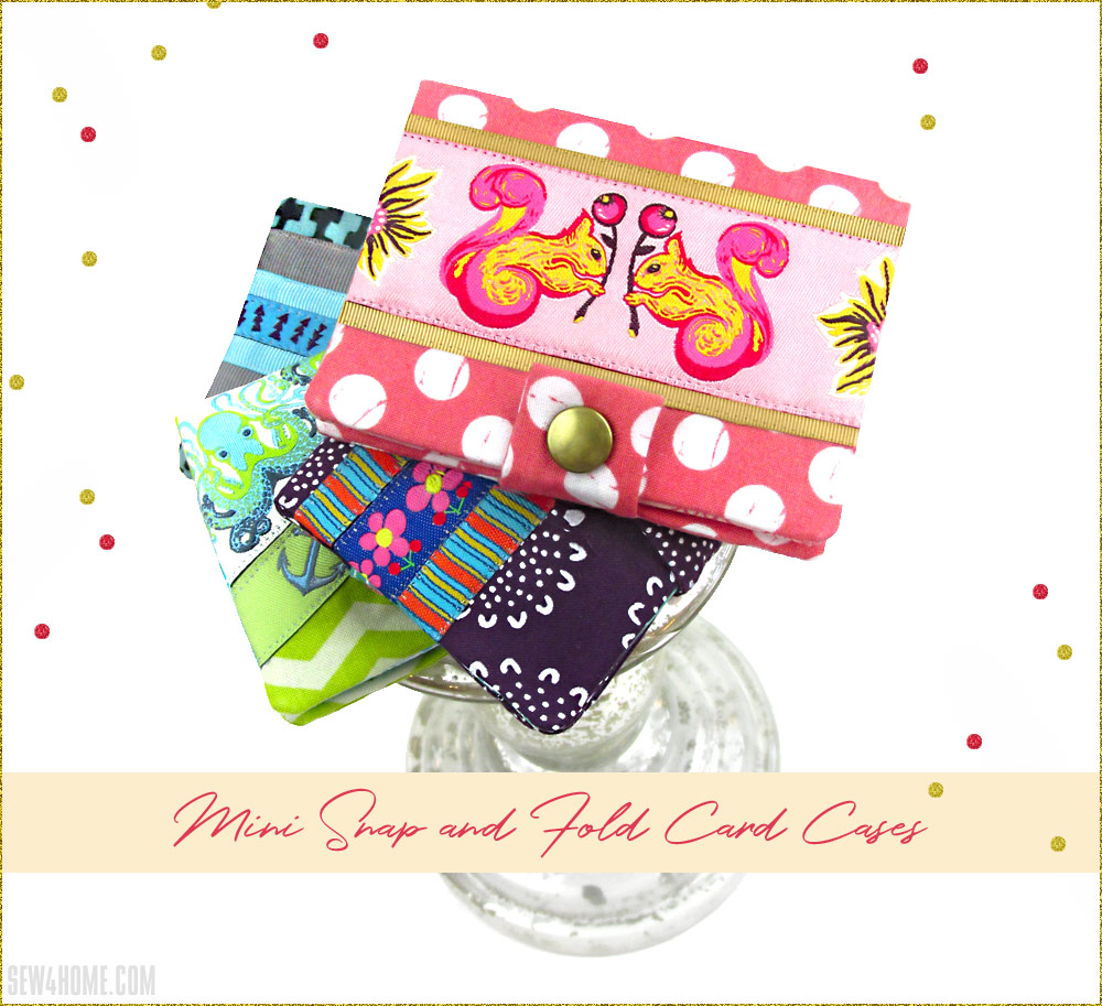 Gift card, credit card, business card; this three-pocket mini wallet holds them all. We used pre-cuts, highlighted with stunning ribbon. You can create multiple cases with a single one-yard length, mixing and matching with fabric scraps or pre-cuts you have on hand. They are a fun and easy project you can finish in an afternoon and a gorgeous gift idea.