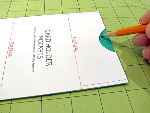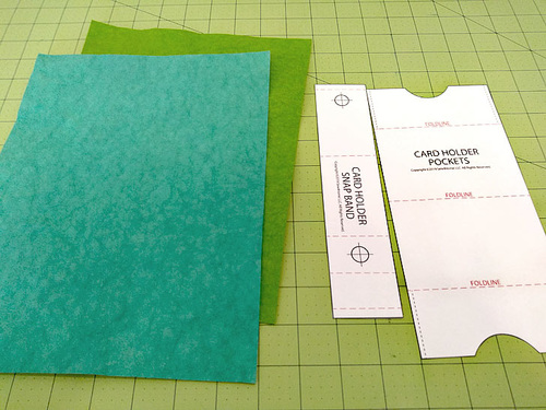 There’s a free downloadable pattern below for both the main body of the wallet and the accent band. We’ve included helpful markings for the fold lines, snaps, and the pocket cut-out curves. The double pockets are sized to fit credit or gift cards, folded bills or business cards.