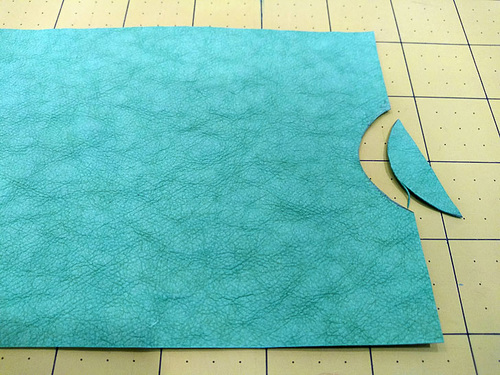 - As mentioned above, you can choose either the smooth side or slightly sueded side of the Kraft-Tex as your “right side.” We chose the smooth side as the right side for the main body piece and the sueded side as the right side for the snap band.