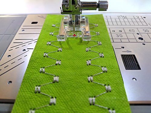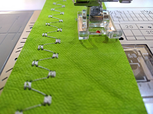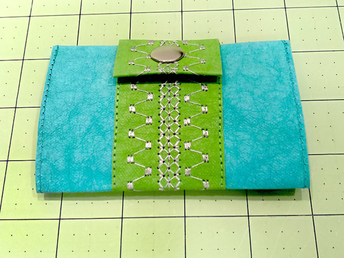 It’s a dream to stitch with. We added an accent band with decorative stitches that wraps around and forms the snap tab.
