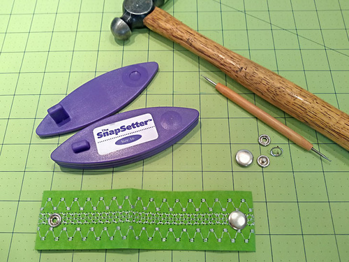 - ONE size 24 cap style snap; we used nickel – you can also get colored caps – along with appropriate setting tools for your chosen snap; here is one option with both snaps and tools – as mentioned above, check your local craft store for additional options