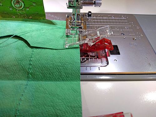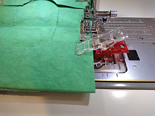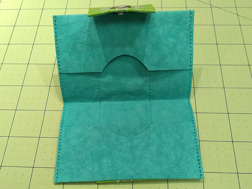 - As shown in the photo below, you are stitching just to the left of the card case fold. As described above, this positioning of the seam is important in order to allow the case to fold-up properly.