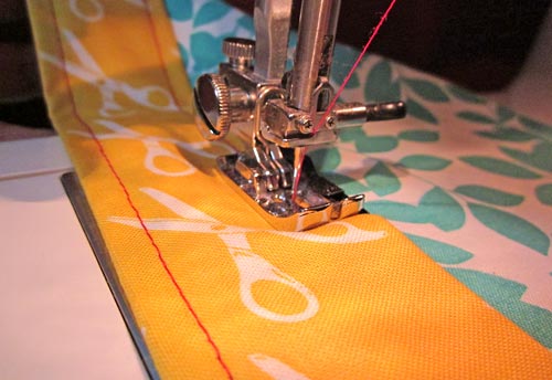 - All purpose thread to contrast with accent fabric strip (the Scissors Yellow in our sample ): we used red