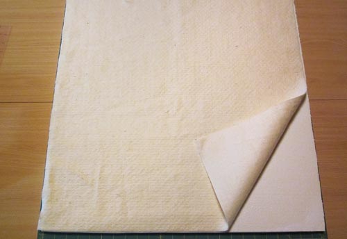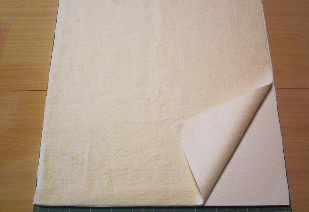 - Holding the layers in place, flip the entire board over. Adjust the layers if necessary, paying particular attention that the bottom folded edge of the pocket panel is still in line with the bottom of the board; this is your straight-edge reference point.