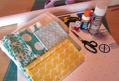 - Fabric-safe spray adhesive: we used Aleene’s Crystal Clear, Acid-Free Tacky Spray and Elmer’s Craft Bond Spray