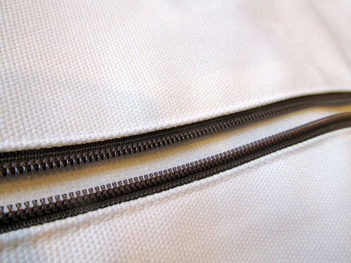- As with most zipper installations, when you can start to feel you’re approaching the zipper pull, stop with your needle in the down position. Twist your fabric around slightly and carefully close the zipper. Re-position your fabric and finish sewing to the end. Be very careful and go slowly; you want your seam line to be super-duper straight.