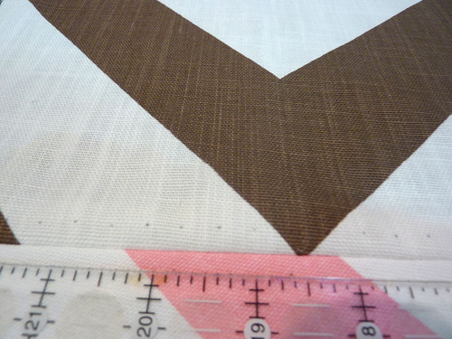 - Press the seam allowances in opposite directions, towards the top (the brown stripe) for the left panel and towards the bottom (the brown chevron) for the center panel.