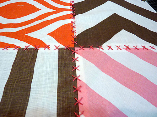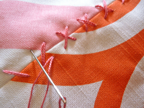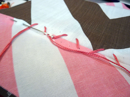 - Do this on both sides of each pillow top seam. This spacing is what looked good to our eye. Feel free to adjust your stitches to what you like best.