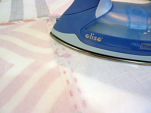- Turn right side out through the zippered opening, press out the corners so they are nice and sharp, and press flat.