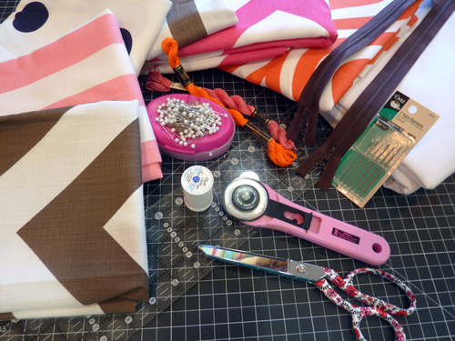 - ONE skein each of TWO coordinating colors of heavy embroidery floss for embroidery accents AND zipper tassels; we used DMC Size 3 Pearl Cotton Needlepoint Thread in Tangerine and Candy Pink