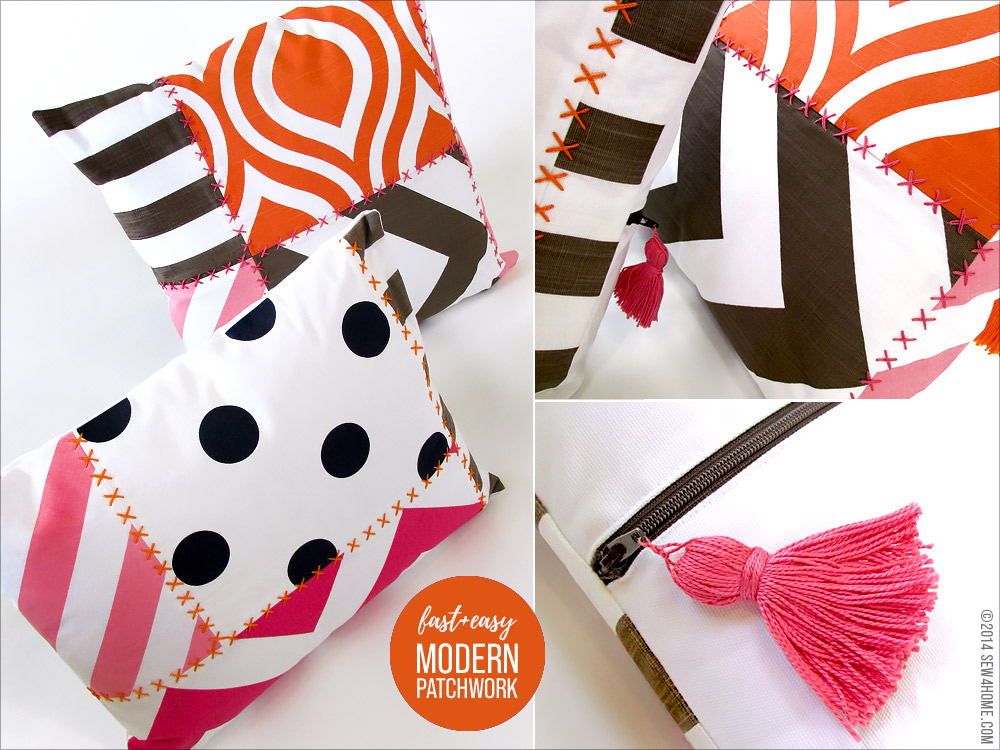 Patchwork is traditionally associated with small prints in a closely coordinated color palette. We’re starting a new tradition with our Modern Print Patchwork Pillows. The designs are bold, the colors are bright and set against crisp, clean white. Then, just when you thought things couldn’t get any more modern… we take a step back and soften the style with hand embroidery on the front and pretty tassels on the back. I think I just heard your sofa give a little shout of delight. Is it time for a little pillow therapy?