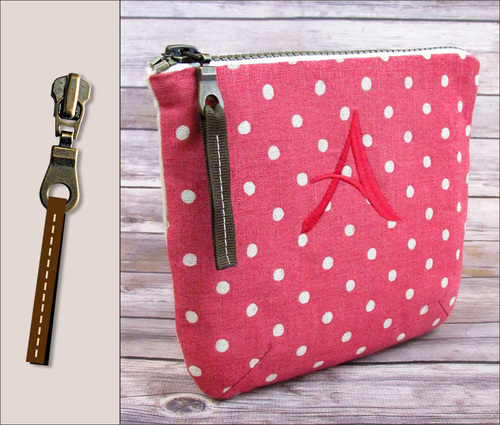 Our pattern is made to be a perfect fit for a 7” zipper. For a bold look like ours, choose a metal zipper with a decorative pull. Then add a cute ribbon as a fob. We simply stitched up the center of the ribbon with a straight seam, but you could also use a decorative stitch that tied into the fabric’s motif.