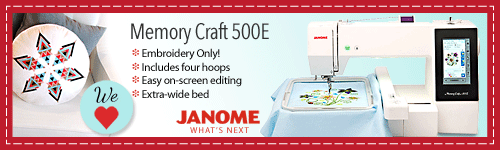 - Embroidery Machine; we used the Janome Memory Craft 500E
