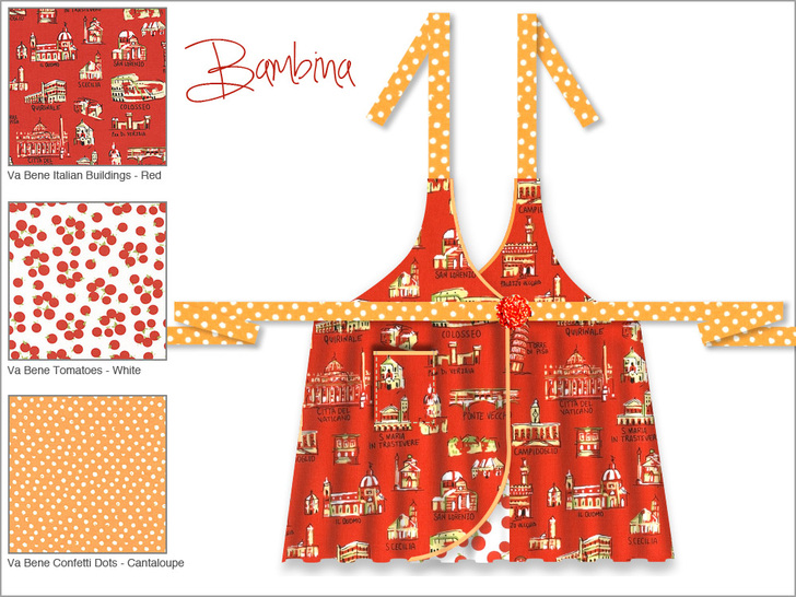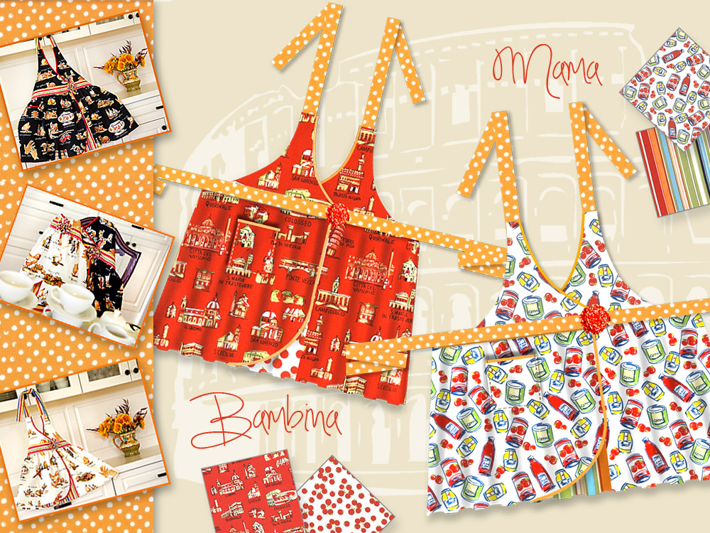If you’re a regular Sew4Home visitor, you know we are apron enthusiasts. A quick check of our Project Index shows nearly 40 entires in the Aprons category, and they’re always one of our favorite options to consider when we’re designing a new series. Today, we have a fabulous Mother-Daughter set initially designed for the Alfabeto Italiano Collezione, which debuted in 2010 from our friends at Michael Miller Fabrics. A quick run through Etsy and Ebay revealed a few cuts of Alfabeto still available for the dedicated searchers, but we were also delighted to find a new Italian-inspired collection from Dear Stella: Va Bene – 21 prints and solids, including cans of tomato sauce, Vespas and cobblestones. We’ve re-drawn our original aprons with specific selections from this fab new collection. Molto bello per mamma e bambina.