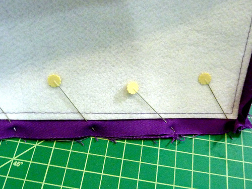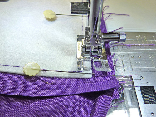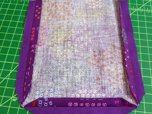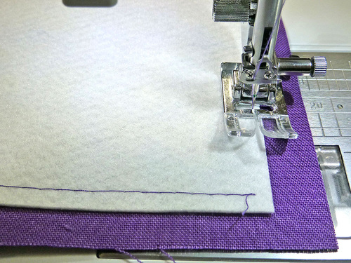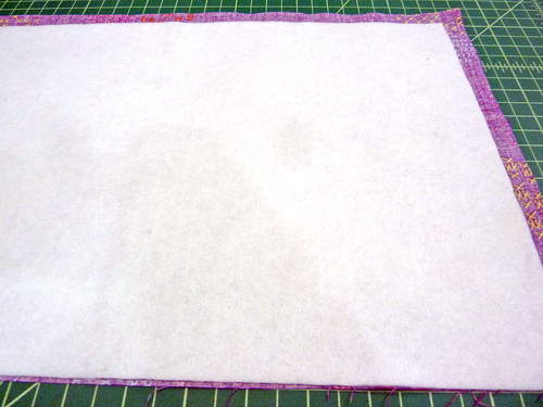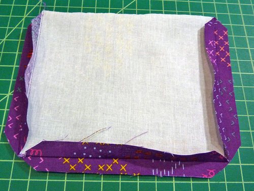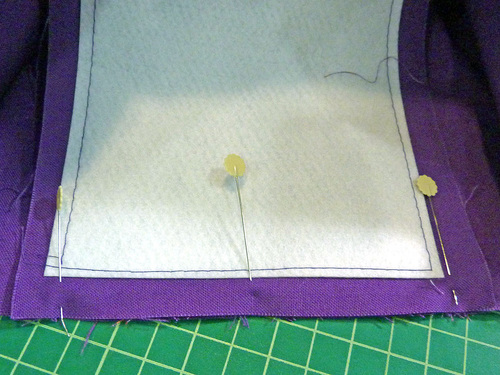 - Because there is a bit of twisting and bending involved with inserting a base panel, we also machine basted the interfacing in place for extra security during construction.