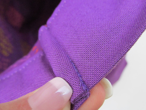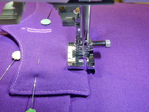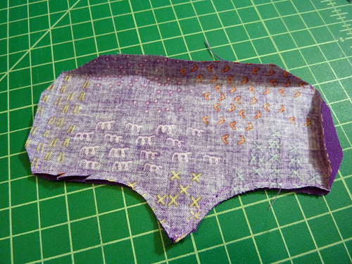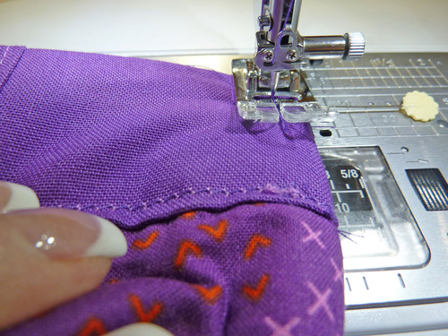 - Edgestitch down the sides and along the bottom curve and point. Do not stitch across the top.